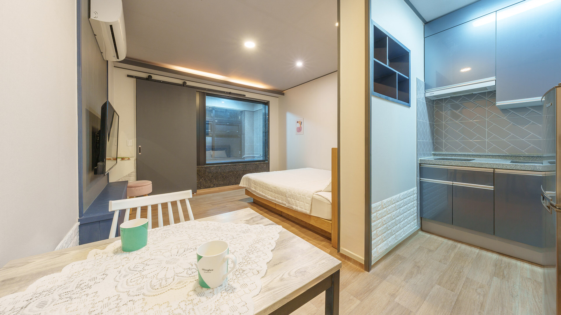 - 집기품목 : 욕실용품, 남녀공용, TV, 금연, 냉장고, 에어컨, 전기밥솥, 취사시설/도구, 일산화탄소 감지기, 화재 감지기, 드라이기, 커피포트, 린스, 슬리퍼, 치약, 소화기, 와이파이, 인덕션, 전자레인지, 식탁, 샴푸, 개별수영장, 산전망