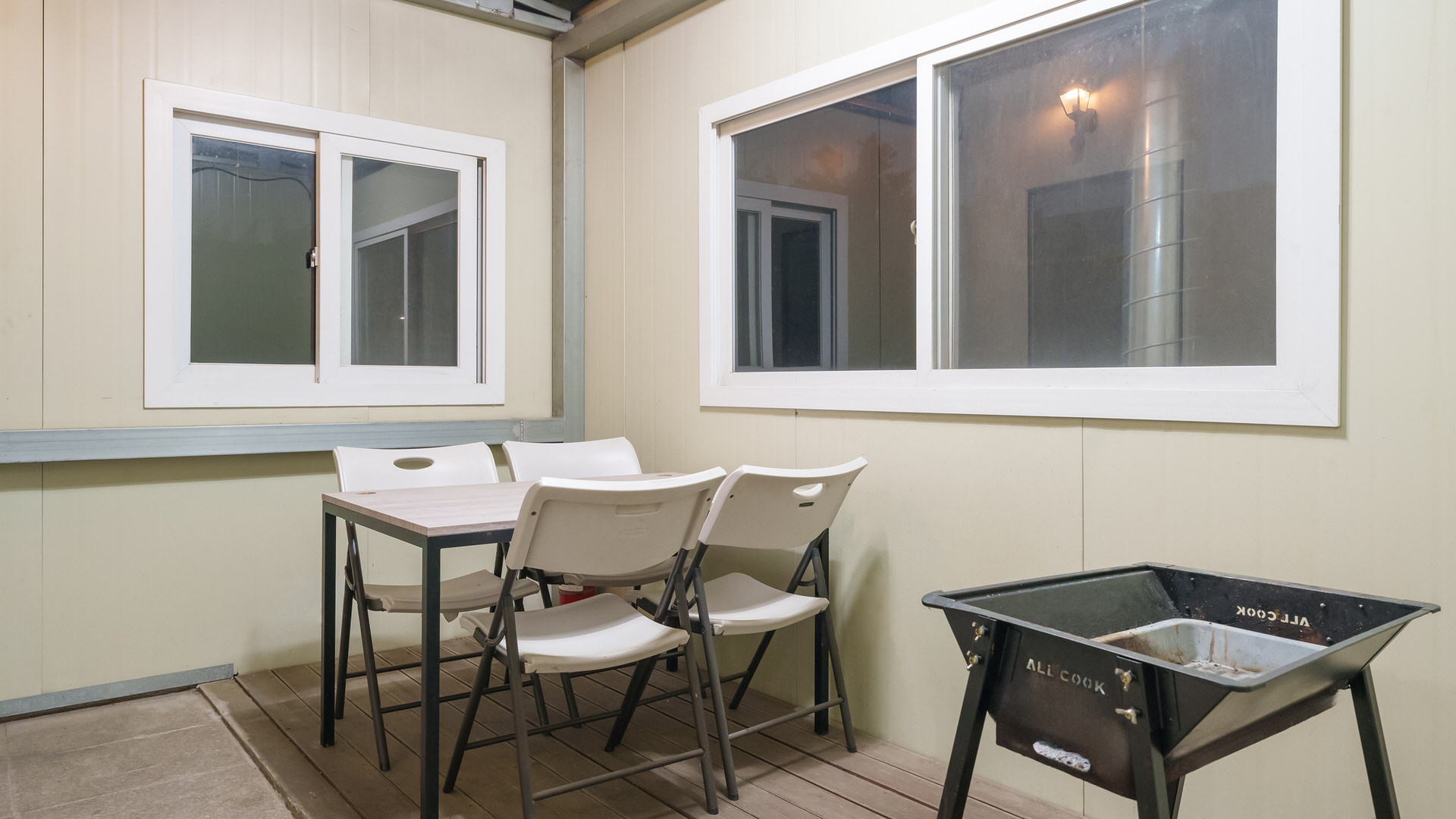 - 집기품목 : 욕실용품, 남녀공용, TV, 금연, 냉장고, 에어컨, 전기밥솥, 취사시설/도구, 일산화탄소 감지기, 화재 감지기, 드라이기, 커피포트, 린스, 슬리퍼, 치약, 소화기, 와이파이, 인덕션, 전자레인지, 식탁, 샴푸, 스파/월풀, 산전망